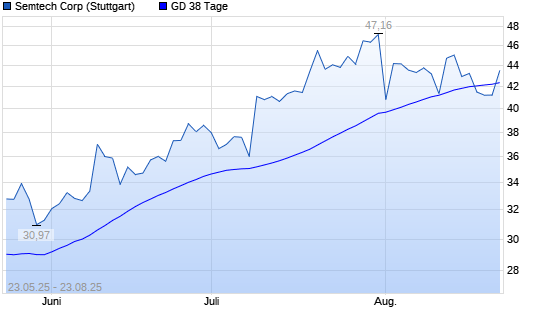 Mit dem Anstieg auf 42,59 EUR hat die Semtech-Aktie am 22.08.2025 die 38-Tage-Linie nach oben gekreuzt.