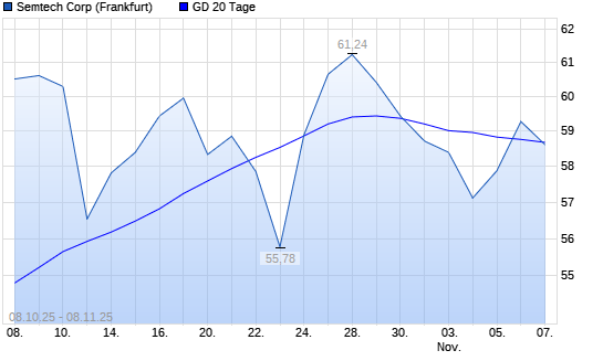 Mit dem Rücksetzer auf 58,62 EUR hat die Semtech-Aktie am 07.11.2025 die 20-Tage-Linie nach unten gekreuzt.