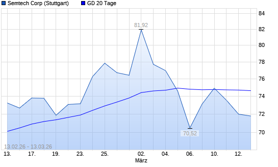 Mit dem Rücksetzer auf 73,28 EUR hat die Semtech-Aktie am 12.03.2026 die 20-Tage-Linie nach unten gekreuzt.