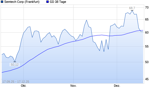 Mit dem Rücksetzer auf 60,32 EUR hat die Semtech-Aktie am 16.12.2025 die 38-Tage-Linie nach unten gekreuzt.