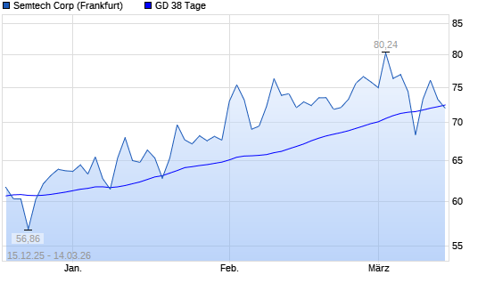 Mit dem Rücksetzer auf 72,00 EUR hat die Semtech-Aktie am 13.03.2026 die 38-Tage-Linie nach unten gekreuzt.