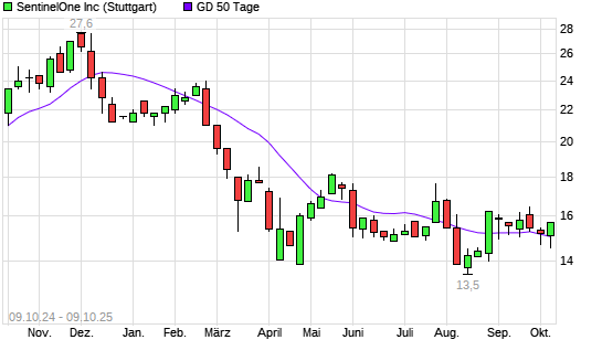 Mit dem Anstieg auf 15,35 EUR hat die SentinelOne-Aktie am 08.10.2025 die 50-Tage-Linie nach oben gekreuzt.