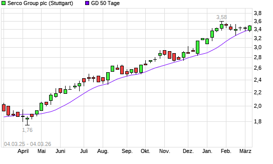 Mit dem Anstieg auf 3,48 EUR hat die Serco Group-Aktie am 03.03.2026 die 50-Tage-Linie nach oben gekreuzt.