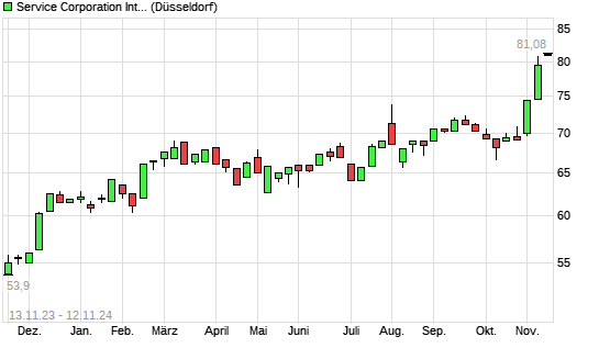 Mit dem Anstieg auf 82,10 EUR hat die Service Corporation International-Aktie (ISIN US8175651046) am 11.11.2024 ein neues All-Time-High erreicht und damit den Kurs vom 07.11.2024 eingestellt.