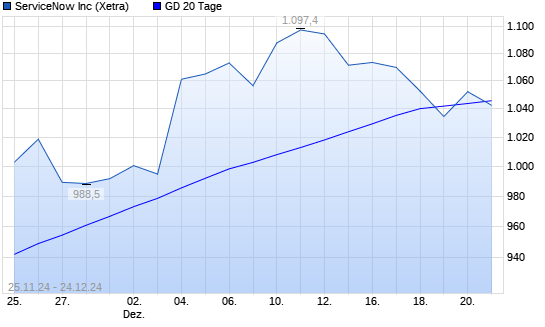 Mit dem Anstieg auf 1.046,20 EUR hat die ServiceNow-Aktie am 23.12.2024 die 20-Tage-Linie nach oben gekreuzt.