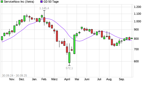Mit dem Anstieg auf 800,50 EUR hat die ServiceNow-Aktie am 29.09.2025 die 50-Tage-Linie nach oben gekreuzt.