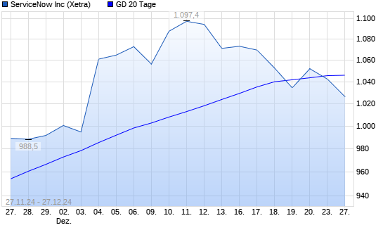 Mit dem Rücksetzer auf 1.046,20 EUR hat die ServiceNow-Aktie am 26.12.2024 die 20-Tage-Linie nach unten gekreuzt.