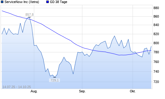 Mit dem Rücksetzer auf 781,10 EUR hat die ServiceNow-Aktie am 13.10.2025 die 38-Tage-Linie nach unten gekreuzt.