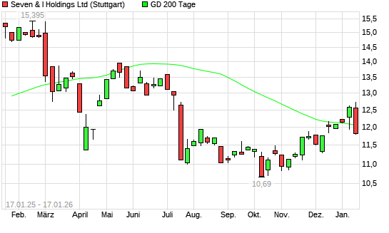 Mit dem Rücksetzer auf 11,86 EUR hat die Seven & Holdings-Aktie am 16.01.2026 die 200-Tage-Linie nach unten gekreuzt.