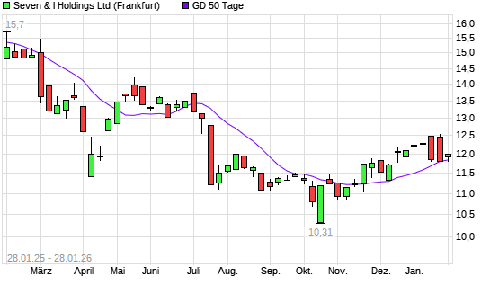 Mit dem Rücksetzer auf 11,81 EUR hat die Seven & Holdings-Aktie am 27.01.2026 die 50-Tage-Linie nach unten gekreuzt.