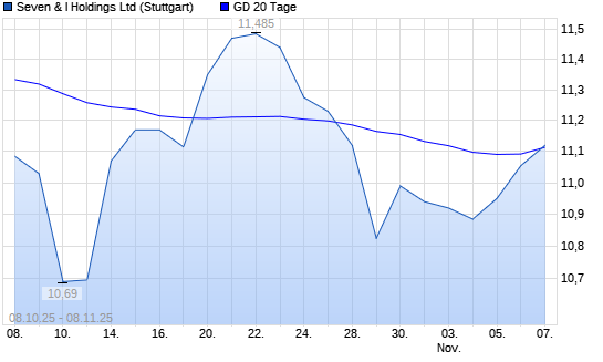 Mit dem Anstieg auf 11,14 EUR hat die Seven & Holdings-Aktie am 07.11.2025 die 20-Tage-Linie nach oben gekreuzt.Die Seven & Holdings-Aktie befindet sich seit dem 13.05.2025 im langfristigen ...weiterlesen