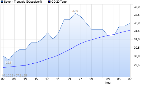 Mit dem Anstieg auf 32,00 EUR hat die Severn Trent-Aktie am 06.11.2025 die 20-Tage-Linie nach oben gekreuzt.