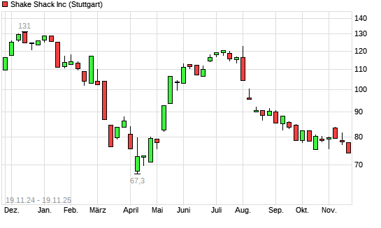 Mit dem Rücksetzer auf 74,24 EUR hat die Shake Shack A-Aktie (ISIN US8190471016) am 18.11.2025 ein neues 6-Monats-Tief erreicht und damit den Kurs vom 13.10.2025 eingestellt.