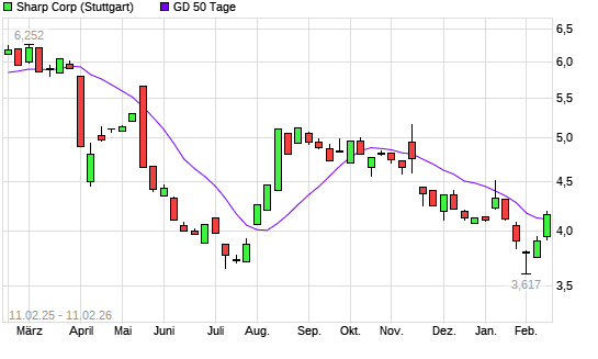 Mit dem Anstieg auf 4,08 EUR hat die Sharp-Aktie am 10.02.2026 die 50-Tage-Linie nach oben gekreuzt.