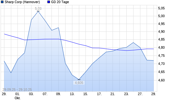Mit dem Rücksetzer auf 4,58 EUR hat die Sharp-Aktie am 28.10.2025 die 20-Tage-Linie nach unten gekreuzt.