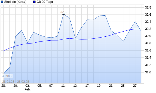 Mit dem Anstieg auf 32,16 EUR hat die Shell (ex Royal Dutch Shell) A-Aktie am 27.02.2025 die 20-Tage-Linie nach oben gekreuzt.
