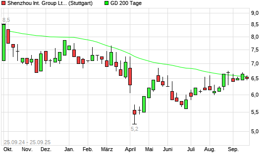 Mit dem Anstieg auf 6,55 EUR hat die Shenzhou International Group-Aktie am 24.09.2025 die 200-Tage-Linie nach oben gekreuzt.