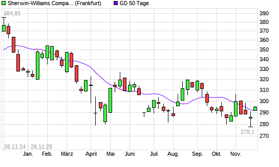 Mit dem Anstieg auf 295,25 EUR hat die Sherwin-Williams-Aktie am 25.11.2025 die 50-Tage-Linie nach oben gekreuzt.