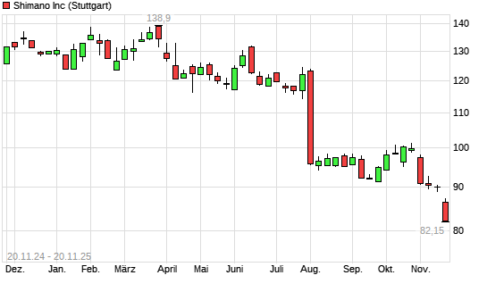 Mit dem Rücksetzer auf 83,75 EUR hat die Shimano-Aktie (ISIN JP3358000002) am 19.11.2025 ein neues 10-Jahres-Tief erreicht und damit den Kurs vom 18.11.2025 eingestellt.