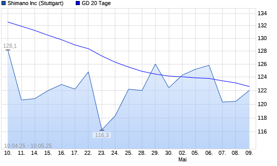 Mit dem Anstieg auf 123,20 EUR hat die Shimano-Aktie am 09.05.2025 die 20-Tage-Linie nach oben gekreuzt.