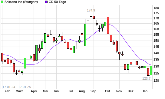 Mit dem Anstieg auf 131,30 EUR hat die Shimano-Aktie am 16.01.2025 die 50-Tage-Linie nach oben gekreuzt.