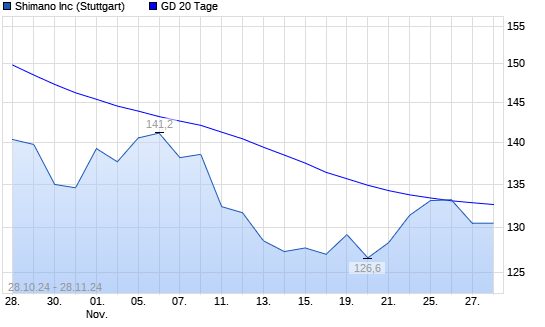 Mit dem Rücksetzer auf 130,20 EUR hat die Shimano-Aktie am 27.11.2024 die 20-Tage-Linie nach unten gekreuzt.