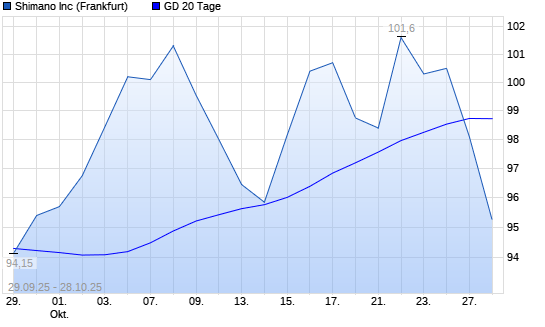 Mit dem Rücksetzer auf 98,10 EUR hat die Shimano-Aktie am 27.10.2025 die 20-Tage-Linie nach unten gekreuzt.Die Shimano-Aktie befindet sich seit dem 22.10.2024 im langfristigen Abwärtstrend ...weiterlesen