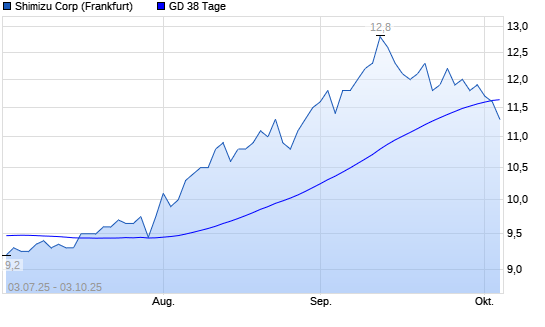 Mit dem Rücksetzer auf 11,60 EUR hat die Shimizu-Aktie am 02.10.2025 die 38-Tage-Linie nach unten gekreuzt.