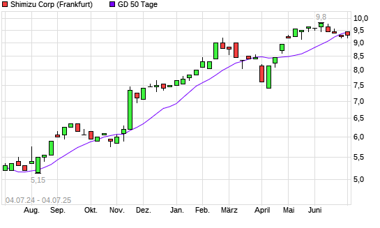 Mit dem Rücksetzer auf 9,20 EUR hat die Shimizu-Aktie am 03.07.2025 die 50-Tage-Linie nach unten gekreuzt.