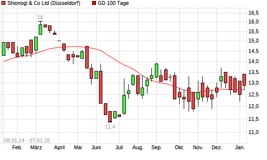 Mit dem Anstieg auf 13,00 EUR hat die Shionogi & Co-Aktie am 06.01.2025 die 100-Tage-Linie nach oben gekreuzt.