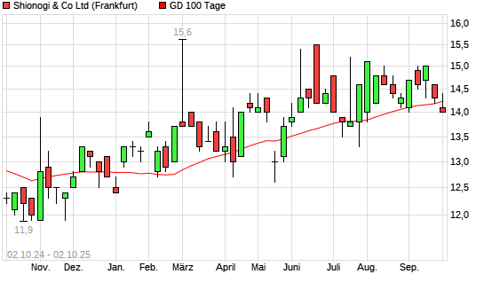 Mit dem Anstieg auf 14,40 EUR hat die Shionogi & Co-Aktie am 01.10.2025 die 100-Tage-Linie nach oben gekreuzt.
