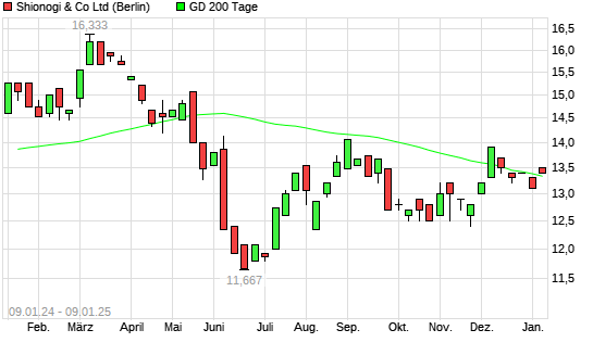 Mit dem Anstieg auf 13,10 EUR hat die Shionogi & Co-Aktie am 08.01.2025 die 200-Tage-Linie nach oben gekreuzt.