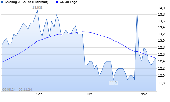 Mit dem Anstieg auf 12,50 EUR hat die Shionogi & Co-Aktie am 08.11.2024 die 38-Tage-Linie nach oben gekreuzt.