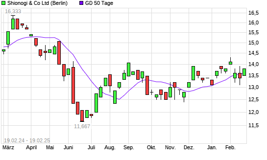 Mit dem Anstieg auf 13,20 EUR hat die Shionogi & Co-Aktie am 18.02.2025 die 50-Tage-Linie nach oben gekreuzt.