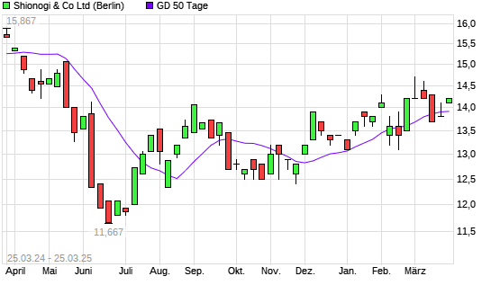 Mit dem Anstieg auf 13,60 EUR hat die Shionogi & Co-Aktie am 24.03.2025 die 50-Tage-Linie nach oben gekreuzt.