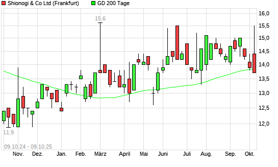 Mit dem Rücksetzer auf 13,80 EUR hat die Shionogi & Co-Aktie am 08.10.2025 die 200-Tage-Linie nach unten gekreuzt.