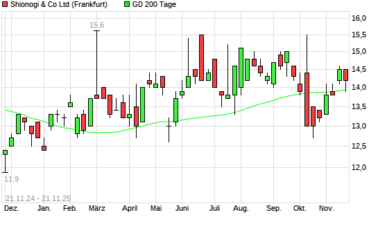 Mit dem Rücksetzer auf 13,90 EUR hat die Shionogi & Co-Aktie am 20.11.2025 die 200-Tage-Linie nach unten gekreuzt.