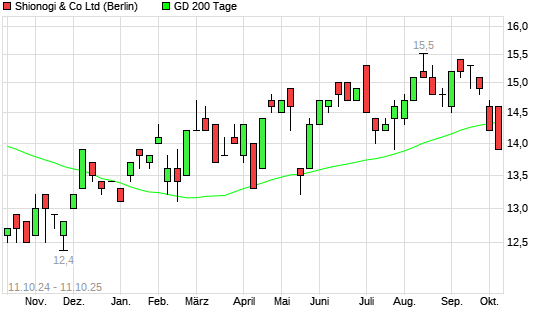 Mit dem Rücksetzer auf 13,00 EUR hat die Shionogi & Co-Aktie am 10.10.2025 die 200-Tage-Linie nach unten gekreuzt.Die Shionogi & Co-Aktie befand sich seit dem 09.10.2025 im langfristigen ...weiterlesen