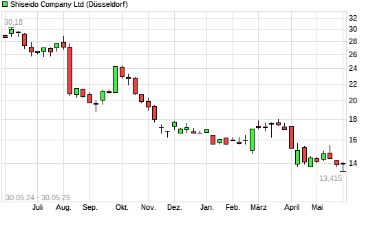 Mit dem Rücksetzer auf 13,36 EUR hat die Shiseido-Aktie (ISIN JP3351600006) am 29.05.2025 ein neues 10-Jahres-Tief erreicht und damit den Kurs vom 26.05.2025 eingestellt.