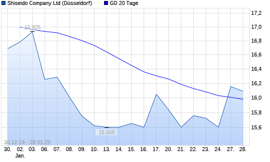 Mit dem Anstieg auf 15,98 EUR hat die Shiseido-Aktie am 27.01.2025 die 20-Tage-Linie nach oben gekreuzt.