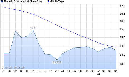 Mit dem Anstieg auf 14,43 EUR hat die Shiseido-Aktie am 06.05.2025 die 20-Tage-Linie nach oben gekreuzt.