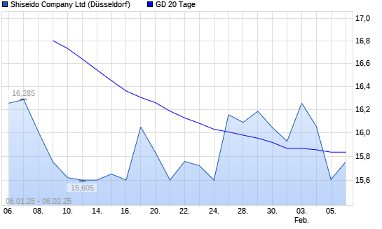 Mit dem Rücksetzer auf 15,56 EUR hat die Shiseido-Aktie am 05.02.2025 die 20-Tage-Linie nach unten gekreuzt.