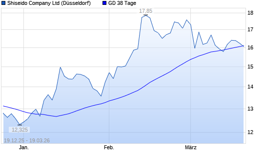 Mit dem Rücksetzer auf 15,77 EUR hat die Shiseido-Aktie am 18.03.2026 die 38-Tage-Linie nach unten gekreuzt.