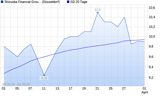 Mit dem Rücksetzer auf 10,00 EUR hat die Shizuoka Bank-Aktie am 31.03.2025 die 20-Tage-Linie nach unten gekreuzt.