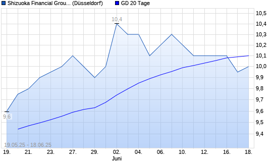 Mit dem Rücksetzer auf 10,10 EUR hat die Shizuoka Bank-Aktie am 17.06.2025 die 20-Tage-Linie nach unten gekreuzt.