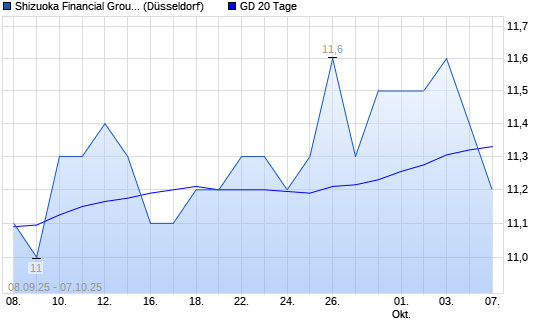Mit dem Rücksetzer auf 11,40 EUR hat die Shizuoka Bank-Aktie am 06.10.2025 die 20-Tage-Linie nach unten gekreuzt.