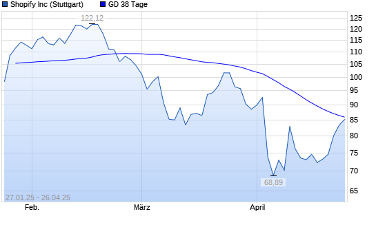 Mit dem Anstieg auf 85,15 EUR hat die Shopify-Aktie am 25.04.2025 die 38-Tage-Linie nach oben gekreuzt.