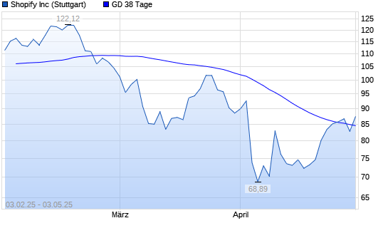 Mit dem Anstieg auf 87,48 EUR hat die Shopify-Aktie am 02.05.2025 die 38-Tage-Linie nach oben gekreuzt.