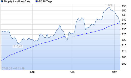 Mit dem Rücksetzer auf 135,92 EUR hat die Shopify-Aktie am 06.11.2025 die 38-Tage-Linie nach unten gekreuzt.
