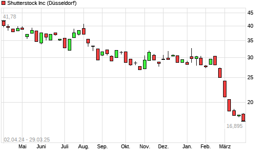 Mit dem Rücksetzer auf 16,63 EUR hat die Shutterstock-Aktie (ISIN US8256901005) am 28.03.2025 ein neues All-Time-Low erreicht und damit den Kurs vom 27.03.2025 eingestellt.